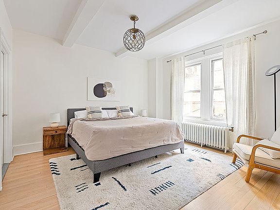 Your dream home awaits in the heart of the Upper West Side! This spacious and beautifully renovated 2-bedroom, 2-bathroom apartment in the sought-after West 70s combines modern luxury with classic prewar charm. This elevated first-floor residence feels more like a second-floor home, offering abundant natural light through oversized windows with tranquil views of the quiet rear of the building. With glimpses of sun and sky, this pin-drop quiet retreat has been meticulously renovated with state-of-the-art fixtures and finishes. High beamed ceilings, hardwood floors, and a thoughtfully designed layout combine timeless charm with modern comfort.