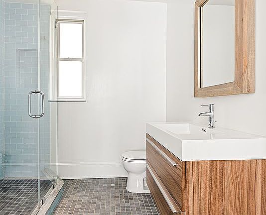 Both bedrooms are generously sized and light-filled. The serene primary suite serves as a peaceful retreat, complete with a custom closet and an en suite windowed marble bathroom with a glass-tiled shower. The second bedroom, equally bright and spacious, includes a custom closet and is served by a luxurious windowed guest bathroom with a deep soaking tub, Toto toilet, and imported porcelain tiles.