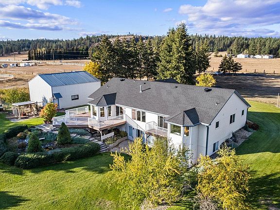Imagine the possibilities on this 10-acre oasis, with a 36'x36' shop and views for miles. This 5 bed, 4 bath home boasts 5,200+ sq ft and main floor living. Fall in love with the soaring vaulted ceilings, natural light, detailed woodwork and acreage out your backdoor. The flowing layout & spatial diversity offer so many entertaining options. Enjoy dining, living and family rooms with a double fireplace and a kitchen nook opening to the back deck. Behold the chef’s kitchen with wall-to-wall cabinets, vast granite counters and a gas range complete with a mini wet bar. The primary suite opens to a private deck and an on-suite bathroom with double walk-in closets, 2 vanities and a clawfoot tub overlooking the grounds. Across the hall are two sizable guest bedrooms. The walkout daylight basement offers 2 more bedrooms, a bathroom, a kitchenette, bonus room and storage galore. Other features include a 3 car garage, movie projector, air filtration and more. Just minutes to Mead HS, Hwy 395, restaurants and shops.