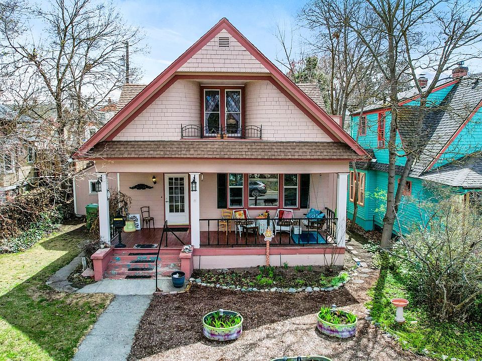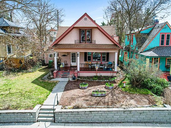 Charming Victorian home with amazing architecture. Remodeled open floor plan has high ceilings giving this home an open airy feeling. Covered front porch with a swing, Bay windows, Hardwood flooring, beautiful stained glass, Vinyl windows, 2 full baths, large Primary bedroom with a sitting area, walk-in closet, skylights, and upstairs bathroom has new flooring and a jacuzzi tub. The dining room is large for those holiday dinners, new gutters, new hot tub, new retaining wall, 50-gallon water heater, 2 deep sinks in basement, sump pump, work bench for all your hobbies and lots of storage area. Convenient to downtown and freeway but tucked in a cozy neighborhood not a ½ block away from Historic Corban Park. Don’t miss this opportunity to own a piece of Spokane’s history!