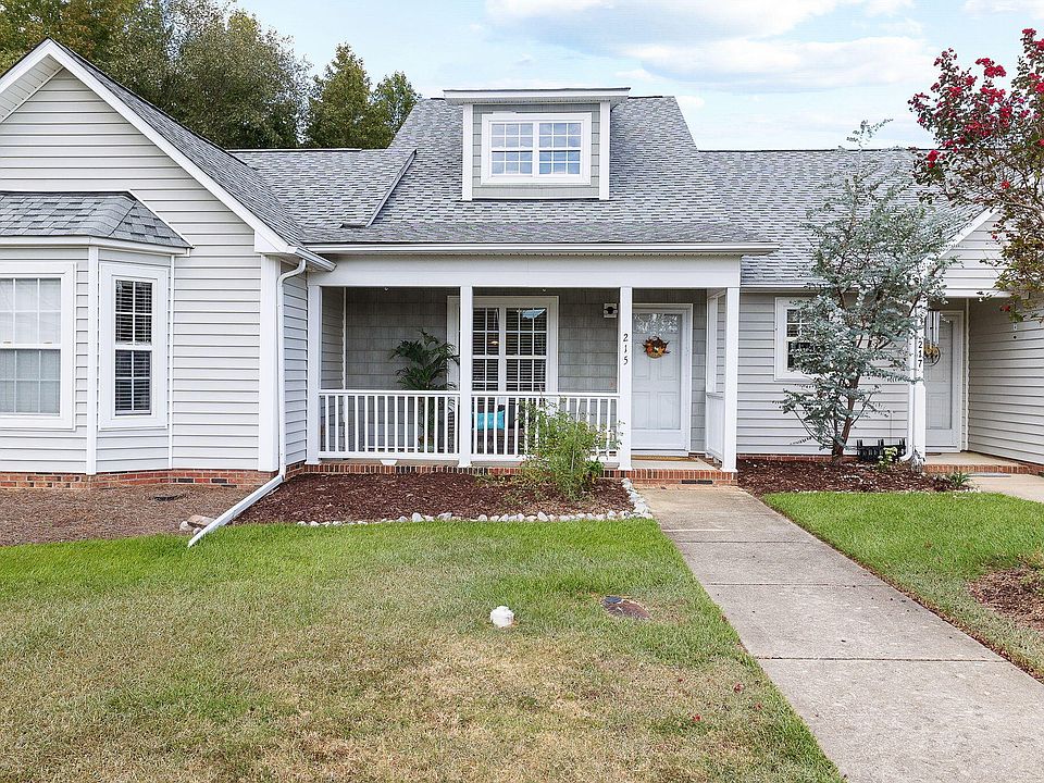 Move-In Ready! 2-Bedroom, 2-Bathroom townhome. Features include a vaulted ceiling and gas logs in the living room, with hardwoods throughout the main common areas. The large primary bedroom is on the main floor and includes dual vanity sinks and a walk-in closet. There is one additional bedroom upstairs. Enjoy a private backyard. Recent improvements include fresh paint and new carpet. A new HVAC system was installed in 2021. The refrigerator, washer, and dryer are included at no additional charge. The HOA covers exterior maintenance and lawn care.