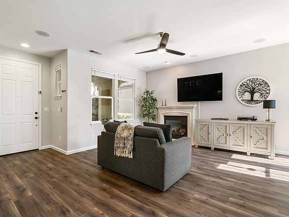 Move-in ready home in desirable Mountain House! This charming home was built in 2008 and features a tile roof, finished garage, and low-maintenance backyard. Inside, enjoy tile and laminate floors, recessed lighting, crown molding, and a cozy fireplace. The kitchen includes a gas stove, microwave, pantry, and more. The primary suite offers a walk-in closet, dual sinks, and updated shower. Additional highlights: central heat & AC, dual pane windows, ceiling fans, indoor laundry, and built-in speaker system. A must-see!