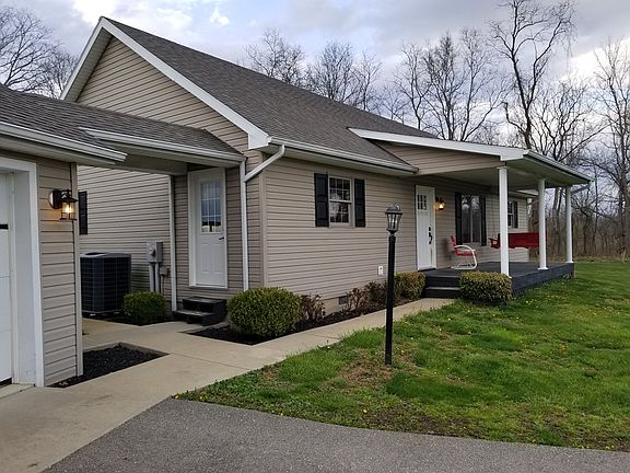 More than just a house - this could be your own retreat! Great outdoor amenities from the above-ground pool & hot tub to the 16 ft. Tiki bar / outdoor kitchen with a banquet grill, deep fryer, smoker, 2 small fridges, a 55" TV & sound system. There's also a deck & fire pit. Situated on just over 3 level acres, this 3 bedroom home is move in ready. Nice covered front porch & a covered walkway leading to the 2 car garage. Additional 1 car garage could be your workshop. Spacious living room with LP gas fireplace. Fully applianced kitchen with a pantry, plenty of cabinets & a pass-thru window to the living room. Dining room windows let in lots of natural light & a sliding glass door leads to the concrete patio. 2 nice sized bedrooms & full bath on one end of the house & the master bed & bath on the other. Mud room off side entrance has the laundry area. Some updates include French drains, sump pump, the 1 car garage, exterior lighting, paved parking area & the outdoor amenities.