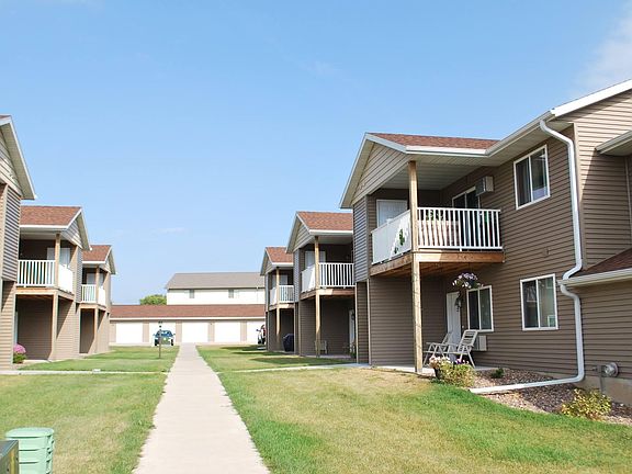 Lower apartment in 16-unit building with its own entrance into each unit. 2br/2bath, electric heat, wall a/c, appliances, washer/dryer hook-ups, 1car detached garage w/ 1 parking space. Water included with rent. NO PETS Renter responsible for Electric. Owner pays water/sewer, plows snow and mows grass.