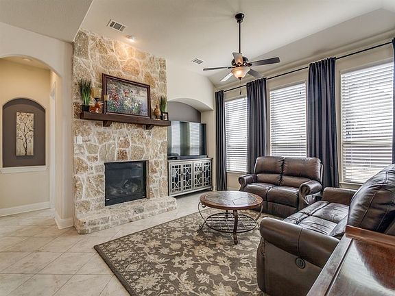 Beautiful brick & stone home with a country style front porch in Prosper ISD. So immaculate you will think you have just stepped into a brand new home. This home features 4 bedrooms, a study & game room that is wired for surround sound & new carpet throughout. A chef's dream kitchen, very open with gas cooktop, tons of granite counters, island & lots of cabinet space. The living area has a beautiful stone fireplace, wall of windows and opens to the kitchen. The master retreat has new wood flooring, a cozy sitting area & custom closet. Master has granite counters, his & her vanities, garden tub and separate shower. Outdoors you can enjoy the covered patio, pool sized yard and side yard is perfect for a dog run.