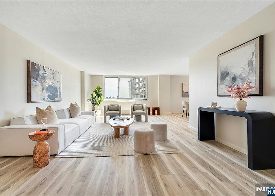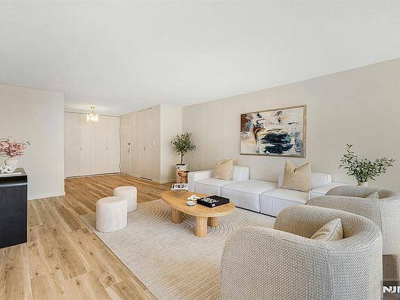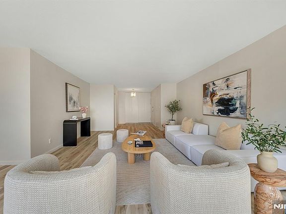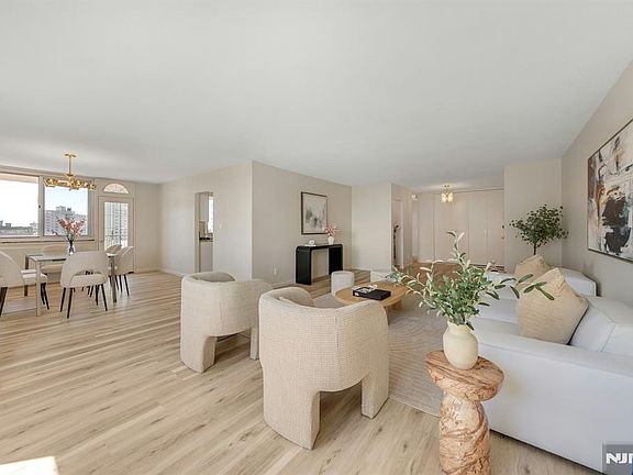 Rarely available! The largest, premium 2 bed/2.5 bath apartment in The Regency. This corner unit has east and south exposure bringing in sunlight all day. Terrace offers east, south and west views. Recently updated in many ways! New, waterproof rigid core floors throughout. Freshly painted, all new HVAC covers, immaculately clean! The apartment features an entry foyer, massive living room, separate dining room, eat-in kitchen with free-standing, separate refrigerator and freezer. SIX hall closets for storage! Powder room for quests. Primary bedroom is en-suite with dressing area, 2 closets (one is a walk-in), stall shower. Second bedroom also has a large walk-in closet and full hall bathroom has a tub. The Regency is a luxury building with a 24-hour doorman, indoor parking (1 spot guaranteed for $70/month), laundry on every floor, rooftop pool, exercise room, community room, renovated hallways and elevators. Pets welcome – one cat or dog under 25 lbs. One block to express buses to NYC, or jitney across the GWB to NYC trains. Close to schools, parks, shopping, restaurants, houses of worship. Maintenance of $2130.71/month includes taxes, U/L mortgage, heat, A/C, gas, electric, water, cable and internet. Storage bin provided. Min 1/3 down required and 4:1 income to expense ratio. If paying cash with no other debt, minimum income needs to be $103k.