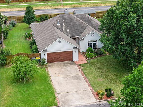 Beautiful updated home in Bixby West Schools. Gorgeous hardwoods throughout the living, dining and bedrooms. Updated spa like baths. Freshly Painted Exterior and interior. Updated Stainless kitchen appliances, gorgeous butcher block counters. Vaulted Living Area with Gas Fireplace, Extended Covered Patio. Large Primary with private access to patio, updated glass shower enclosure, split bedroom plan. Relaxing backyard with fire pit, garden areas and large storage shed with 110 Electric Service. Abundant storage!