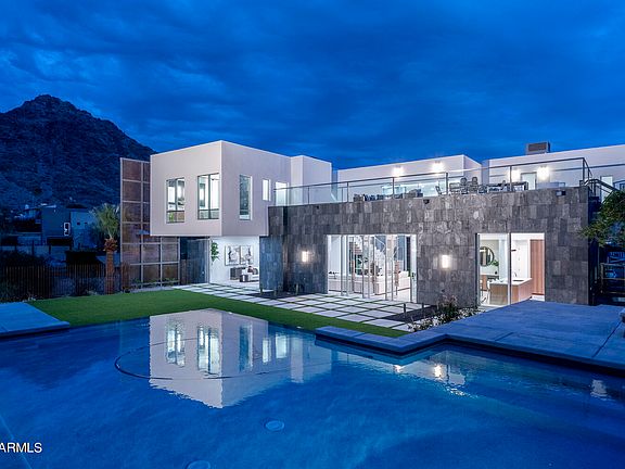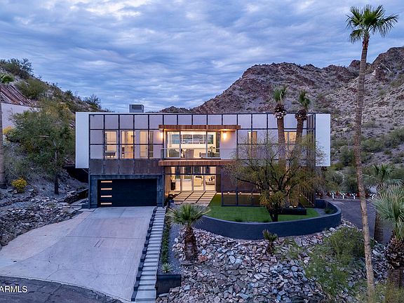 Biltmore Highlands, located on a hillside bordering the Phoenix Mountain Preserve Piestewa Peak. This residence combines nature's tranquility with urban convenience, offering breathtaking & unobstructed mountain, and city views! Minimalist-style kitchen with ample storage, and a complete butler pantry. The primary bedroom has a sizable walk-in closet w/built-ins and a lavish ensuite with dual sinks & soaking tub. The upstairs laundry room is complete with sink & cabinetry. Discover the entertainer's backyard, where an elevated negative edge pool awaits for refreshing swims, or chill and take in the mountain views. The rooftop party deck is an excellent spot to savor those amazing sunsets complete with an outdoor kitchen. You have a private gate to access the Phoenix Mountain Preserve! The scrim that covers the front and east side of the home creates a solar passage, increasing efficiency, privacy, and once it rust it will allow the home to blend with its desert surroundings. A huge covered patio in front of the home allows you to enjoy indoor-outdoor living when opening your matching 4-panel pocket doors and 8 pivot doors, doubling your space for entertaining. World-class hiking right out your back gate! Just Minutes from Old Town Scottsdale, Sky Harbor Airport, and downtown Phoenix. Located near the 51 freeway, without the noise, that gets you to the 10 or the 101 freeways in minutes.