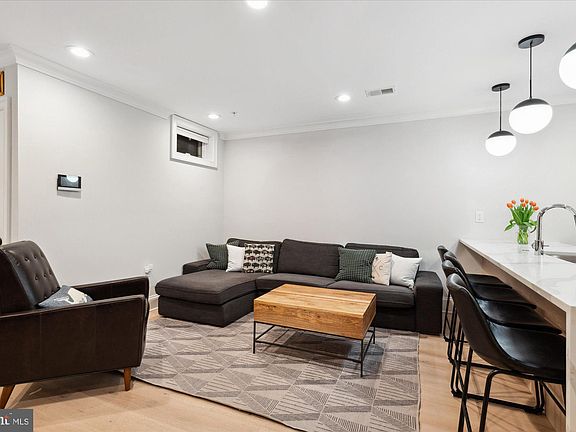 Seller will consider seller-funded buy down of buyer's mortgage! Welcome to Residence #1 at The Hudson. This 2-bedroom (primary bed + den), 2 full bath residence offers 950 sq ft (per floor plan) of thoughtfully designed living space just a stone's throw from Dupont Circle. Originally built in the early 1900s and transformed in 2020 into four condominiums, The Hudson blends timeless architecture with modern sophistication. Inside, you’ll find nearly 10-foot ceilings, wide-plank white oak flooring, and custom details throughout. The open-concept main living area is anchored by a stunning kitchen, featuring Calcutta quartz countertops, two-toned cabinetry, Bosch appliances, and a spacious island. The serene primary suite offers generous closet space and a beautifully appointed en suite bath with a walk-in shower. A versatile den, perfect for guests or a home office, a second full bath, and a stacked washer/dryer complete the layout. The private outdoor terrace is perfect for dining al fresco, tending to a container garden, or simply enjoying a quiet moment surrounded by the city’s charm. Located next to the historic Cosmos Club and Phillips Collection, and just two blocks from the red line Metro, vibrant shops and dining that surrounds Dupont Circle and Kalorama, this is city living at its finest!