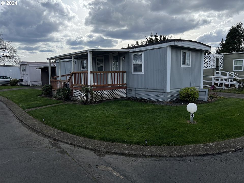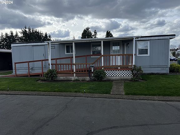 This is an updated dream. 1969 Biltmore Manufactured Home on a Corner Lot. So many updates including: Walk-in shower, two efficient heat pumps, updated appliances, easy to use custom venetian blind that open easily and are upgraded. This is a 55+ community. Security light. There is a transferable home warranty policy. In addition is a shed in back of the carport with built in shelves on 3 sides. Porch that is located by the ramp for your convenience. Lots of storage in the kitchen. The nice stacked washer and dryer is perfect as it takes up a little space and is newer. You will enjoy the built in drawers in the primary bedroom. A surprise is in store for you as you view this amazing updated manufactured home. You will be surprised how inexpensive it is to heat and cool this home. Amenities include: Club House, Full Kitchen, Billiards, Dog Park, and Laundry Facilities. A dog friendly community. Conveniently located close to shopping, hospital, and easy I-5 access.