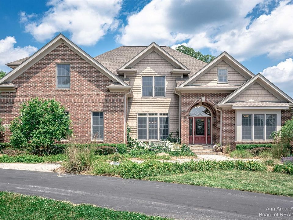 Have you been searching for a custom built home off a paved road that is on acreage without an Association to deal with? Welcome home!! This gorgeous 5 bed/3.5 bath brick contemporary sits on 5 picturesque acres and is only minutes from Downtown. No expenses were spared by this original homeowner including 1st floor Primary bedroom suite w/tray ceiling, fireplace, access to deck, private bath w/6 head temp. controlled spa shower, spa tub, dual vanities, custom closets, and beautiful tilework. Other features include a Great Room w/cathedral ceiling, formal dining room and study w/Brazilian cherry hardwood flooring and built in shelving, true gourmet kitchen w/dual tone cabinetry, high end stainless steel appliances, center island, large breakfast nook and connecting family room w/vaulted ceiling and fireplace. Four generously sized upstairs bedrooms, two sharing a jack and jill bath and one w/a private bath. Unfinished walk out lower level is plumbed for a bath and kitchenette and has some drywall ready to go. Beautiful stamped concrete driveway and walkway, rolling hills & trees, maintenance free Trex deck, 3/4 brick w/hardy board siding & cedar shake (made out of maintenance free vinyl). Low twp taxes and Saline Schools