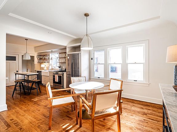 Charming bungalow just steps from the Highlands! As you enter the Sunroom you will see how this home blends open concept living with classic architectural details. Main floor features hardwoods, a bay-windowed living room, dining area flowing to a tastefully updated kitchen with newer appliances and lighting. Primary and second bedrooms plus full bath on main level. Upstairs offers a third bedroom and bonus room, perfect as a home office. Enjoy summer evenings on the patio beneath a pergola--ideal for relaxing or entertaining.