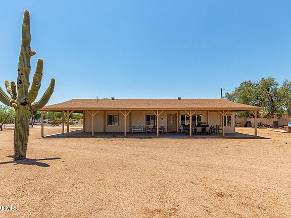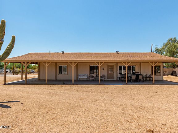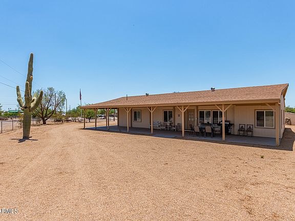 The search is finally over! This fantastic horse property nestled on over 1 acre of land in Apache Junction is the ONE. You will be greeted by an inviting semi-open layout showcasing gleaming wood-look flooring and a neutral color palette throughout. The well-appointed kitchen boasts stainless steel appliances, white cabinetry, and a center island equipped with a convenient breakfast bar for casual dining. End your busy day in the primary bedroom, comprised of plush carpet in all the right places and a private bathroom with dual sinks. Discover the massive backyard featuring a full-length covered patio, a detached 2.5-car garage, amazing mountain views, and TONS of space ready for your personal touch! Don't miss out on this one! Newer ac with warranty until 2032.