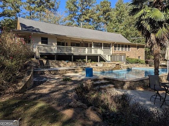 Honey Stop The Car! This property is nestled in the heart of Rockdale County. Welcome to your private paradise and oasis gated 5 + acres luxury estate with multiple spacious rooms offering the perfect blend of land, luxury, and lifestyle with pure tranquility views of a resort-like feel with a ground-heated salt water pool and hot tub. It is the perfect blend of a luxury lifestyle with privacy and plenty of space- it's all here, ready for you to call home. Imagine evenings spent on the porch, enjoying the peace of the surroundings, or hosting gatherings on the patio, perfect for entertainment and everyday living. Primary suite on the main boasts a private sitting area, spa-style bath, and sunlit views of the courtyard and pool. Upstairs a second family room and an additional master suite provide flexibility for guests. Freshly painted and move-in ready, ideal for multi-generational living. Step inside to find and enjoy a spacious family room with a gas fireplace and custom built-ins, gleaming hardwood floors, a chef's kitchen with granite countertops, double ovens, and an inviting charming breakfast area overlooking your private backyard hidden gems. There is a detached garage with full game room and workshop offers versatility and fun that can be utilized for extra storage. Multiple porches, including a screened sunroom and porch extending the living space outdoors and peaceful surroundings. Backyard space includes a covered pavilion with a wet bar and retractable TV. Lush Landschaping thoughout is filled with blooming plants, apple and pear trees, blueberry bushes, this property provides true privacy just minutes from Conyers new restaurants, shops, and exciting development. Offers a solid foundation for creating lasting memories. A property ready to be transformed into your dream home.