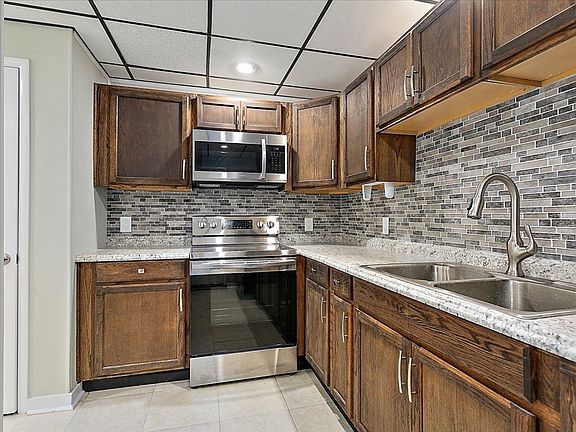 Beautifully tiled kitchen backsplashHidden fold-down ironing boardNew kitchen appliances