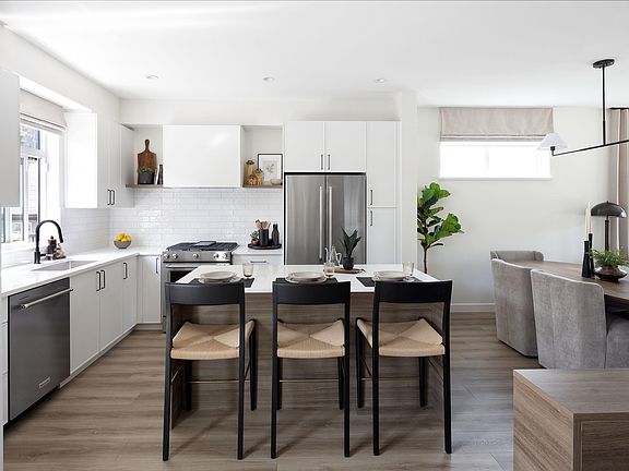Rindall is a boutique community of 44 thoughtfully crafted 3–4 bedroom townhomes in the heart of Port Coquitlam. Designed with families in mind, Rindall combines the comfort of single-family living with walkable access to schools, recreation, trails, and downtown amenities. This unique duplex home features 3 bedrooms, 2.5 bathrooms, a private yard, balcony, and a spacious side-by-side garage. Interiors include 9' ceilings, a cooling system, and full-size kitchen appliances. Nestled in a quiet neighborhood yet close to everything, Rindall offers quality living by trusted Woodbridge Homes. Construction is well underway, with completions starting Fall 2025. Rindall Sales Gallery is open from 12 - 5 PM, every weekend.
