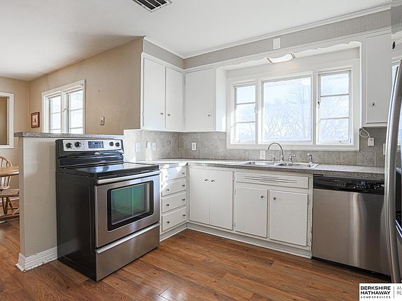 Fantastic walkout raised ranch home with a lot to offer. Your covered porch greets you to your new home. As you enter, you’ll notice the kitchen features stainless steel appliances, ample counter & cabinet space plus a large dining area that opens to the living room. The spacious living room features a grand picturesque window allowing for lots of natural light. The primary suite features hardwood floors & a custom built-in closet. Finished lower-level features a large family room with faux fireplace & flex room with its own front entrance, plus a spacious laundry room with a ¾ bathroom. Large storage room is a bonus, with endless possibilities as a hobby or craft room. Enjoy grilling out while you entertain on your large covered patio that highlights the backyard with a fully fenced yard. Don’t miss the heated garage! Close to Vogel Park, UNMC, VA Hospital, schools, Aksarben & Blackstone Districts & a host of other amenities. New roof with gutter guards & siding in 2023.