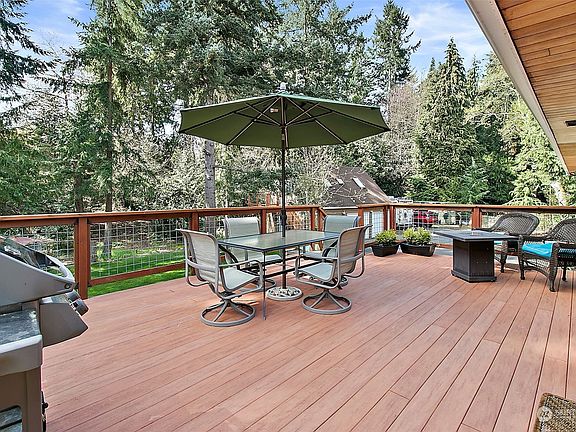 Privacy, seclusion, and park like setting with this just shy 1 acre. Classic & charming home in this Gregory Heights community. Home features Lots of natural light with big windows and skylights. The main floor has everything you will need with primary bedroom, 2 BTH RM, kitchen dining, sitting room plus laundry. Step onto the large deck overlooking the huge private yard, down the stairs to the patio with covered space to keep you dry when raining & lots of room for games, entertaining & more.  Also view the detached garage with ADU above, extended living, or rental income. Downstairs has 3 bedrooms and another full bath plus laundry and family room. Garage has space for three cars just needs 3rd door to be added. Parking for all your toys.