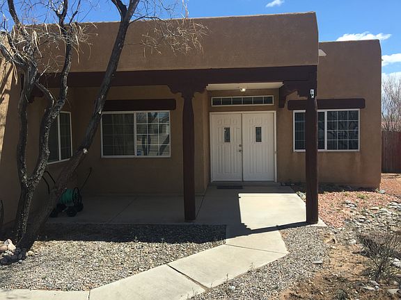 A nice Wallen built 4/2 on 1/2 acre with well and septic. The home has 2 living areas, views from the eat in kitchen and family room, HUGE master with his/hers walking closets. Big closets in the 3 other bedrooms. Amazing undisturbed backyard views of the Sandias. Back yard access and RV Parking. Rent to Own or REC ok with $10,000 down.