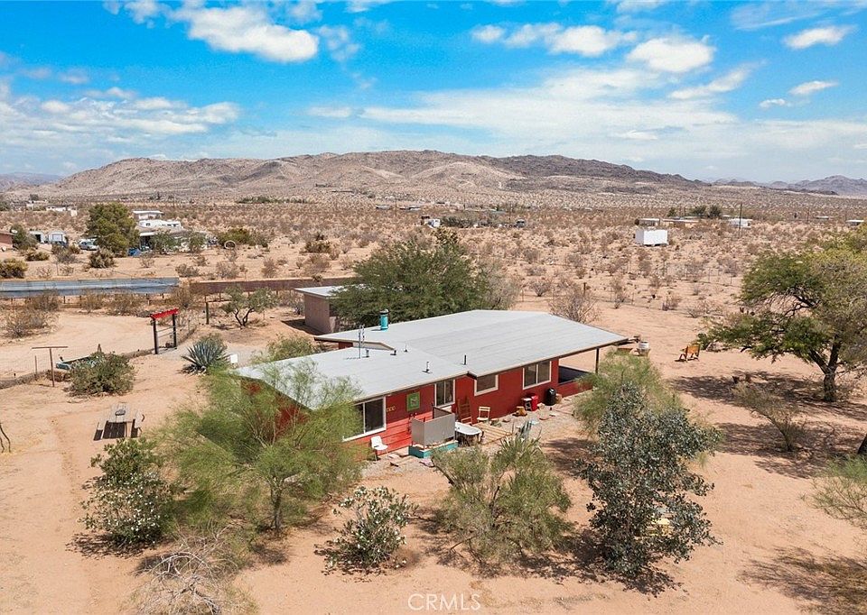 Discover the hidden gem of Landers Cove! Enter via private drive, bordered by a ribbon of custom privacy fence, to find the home’s secluded spot among the mature, green trees. This vibrant home is a feast for the eyes. It’s full of fine detail, from the custom-made cabinets and vanity pulls to the bespoke bentwood cover to the cooler, each have been thoughtfully crafted. Inside, the polished concrete floors are treated with a rich copper finish, The kitchen features a hammered copper sink, while the primary bathroom boasts copper-colored tiles, in keeping with the copper theme. Beautiful Mexican ceramic tiles adorn both bathrooms and the kitchen. Cook from recipes old and new on the spotless vintage Kenmore range, or unwind on the built-in daybed. For a cozy ambiance, crank the knob to 11 with a warm fire in the imported Danish red enamel wood stove. Outside, the deep eaves of the front porch perfectly frame Landers’ iconic Goat Mountain. You’ll find both an outdoor shower and tub, along with plenty of spots sit and take in the views and starts. The extensive irrigation system keeps the flora green and happy! The 2.5 acre lot is fenced and cross fenced. A large outbuilding has plenty of room for storage or could be a launch pad for other uses. Don’t miss out on this calm, desert sanctuary!