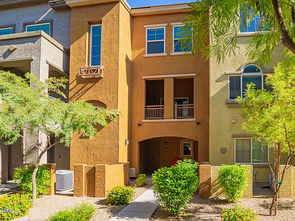 Gorgeous townhome in premier location in the gated Villagio at Happy Valley community just steps from one of two sparkling pools. Main living/dining area very bright & open w/ tile flooring, custom lighting, convenient half-bath, ideal space to relax & entertain. Large private balcony is quiet space to enjoy the outdoors. Beautiful, spacious eat-in kitchen features rich espresso cabinetry, gorgeous granite counters, gleaming new SS appliances, large island w/ convenient bkfst bar, big pantry. Three spacious bedrooms on top floor, two of which feature plush carpet. Comfortable primary bedroom with huge walk in closet. Two beautifully appointed bathrooms upstairs. Convenient laundry room on top floor, plus spacious two car garage w/ private direct entry into home. Don't miss!