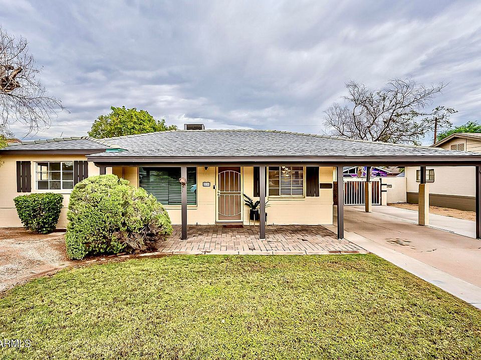 Move-in ready 3-bed, 2-bath gem in the heart of 19 North! With 1,790 sq. ft. of stylish living, you'll love the open feel, crown molding, and luxury plank vinyl flooring throughout. The 2023 kitchen remodel shines with sleek, high-gloss cabinets, a glass tile backsplash, Frigidaire stainless steel appliances, an induction cooktop, and recessed lighting. A spacious family room sets this home apart—featuring a bay window, wood-burning fireplace, and double doors to the lush backyard. Both bathrooms are tastefully updated, and the primary offers dual closets. Outdoors, enjoy mature landscaping, a covered patio, a work area, a shed, and a larger gate. All this, with no HOA, just minutes to I-17, the light rail, shopping, dining, and under 9 miles from downtown Phoenix.