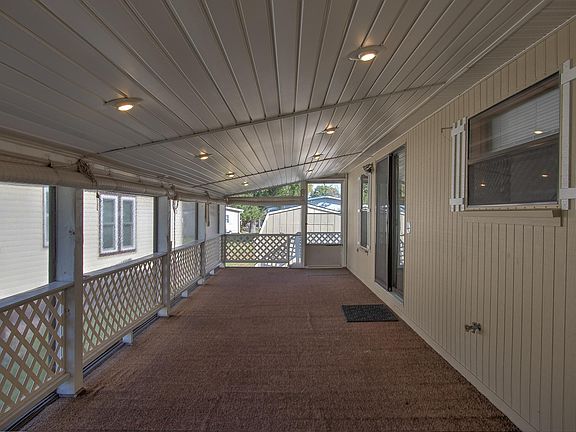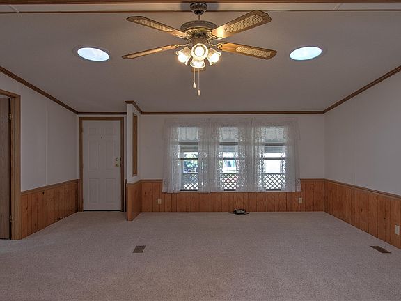 One Owner Home in highly desired Pine Village, a 55+ Community, is now available! Spacious 1987, 28x60 Detroiter double wide home with 48x10 foot side screened in porch and 9x10 covered deck. Inside you'll find 3 bedrooms, 2 baths all on 1,680 square feet. Large open kitchen with 2 dining spaces, built in hutch and a gas fireplace in the living room to cozy up to. The primary bedroom suite has it's own private 3/4 bath and an oversized 12x5 walk in closet. Main floor laundry located conveniently off the kitchen. Outside there is a double carport and 3 sheds and the favorite feature the Sellers throughouly enjoyed was the huge screened in porch! Home has been well cared for, no pets or smoking and ready for it's next homeowner to enjoy. This well maintained Park has storm shelters, a community center and storage space options. Enjoy the convenient location close to shopping, dining, clinic, hospital and walking/biking paths.