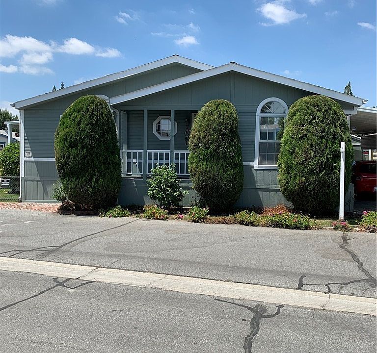 JUST REDUCED OVER $25,000!!! PRIME LOCATION!!! Stunning, 1800 square-foot SILVERCREST COTTAGE MODEL! This triple wide, manufactured home has 3 bedrooms and 2 full Upgraded bathrooms. There are bay and leaded stain glass windows! Huge master with walk-in closet, large gourmet kitchen with breakfast area, formal dining room, large den/office or 3rd bedroom, custom ash cabinets thru-out and separate laundry room. Cathedral ceilings and a spacious open floor plan. Raised full covered sun porch off den. Very private end of park home with custom large storage shed, HUGE FENCED YARD with lavish landscaping and automatic sprinklers. Park with pool, clubhouse, family park activities, security, monthly events, etc. Newly completed, designer painted, both inside and outside. WATER INCLUDED. **A quick escrow would be agreeable**