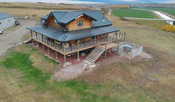Bring your business and your family to this one-of-a-kind property that blends rugged utility with rustic comfort. Perched high on a hilltop with 360-degree views, this 27.82-acre native pasture property (plus 6 acres of leased land along the river) offers unmatched sunsets, mountain vistas, and a front-row seat to the Bow River valley. Just 40 minutes from Calgary, it’s the perfect balance of rural seclusion and easy access to the city. At the heart of the acreage sits a solid custom-built log home—warm, inviting, and uniquely designed. Over 1,800 sq. ft. of living space 4+1 bedrooms, 3 bathrooms. Fully Developed Basement. Sun-drenched open-concept living areas with natural wood finishes. Striking live-edge island kitchen for family and entertaining Wood-burning stove for cozy evenings Master loft retreat with his-and-hers walk-in closets, spa-like ensuite (steam shower, double vanities), private balcony, and two-person hot tub under the stars. The SHOP for mechanics, truckers, and serious operators, the 5,100 sq. ft. shop is second to none. Radiant heat & floor drainage Three overhead cranes (1 × 3-ton, 2 × 1-ton) Car & truck hoists 16x12 walk-in cooler. Warm Storage. On-site bathroom & laundry. Mezzanine Man Cave. 3,500-gallon diesel storage tank. Double Decker Storage Can. 1,900 sq. ft. man-cave/office space Illegal suite for staff housing or rental income Lifestyle Extras. Ideal for horse lovers with open pasture. Clay Based Area for future riding arena Space for trucks, equipment, or large-scale operations A true blend of work and lifestyle Why It’s Special?. This property is more than just land and buildings—it’s a rare opportunity to live, work, and play without compromise. Whether you’re growing a business, raising a family, or simply looking for wide-open space with top-end amenities, this acreage is in a league of its own. Will not be replaced at this Price! Won't Last Long! Don’t miss your chance. Book your private tour today and experience the “Top of the World” lifestyle for yourself. Enjoy the Wildlife. Nature's Home.