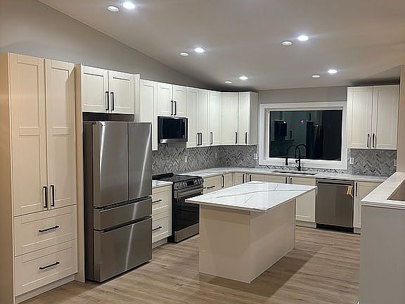 Brand new house re-built from the foundation up. High end finishes throughout. 1850 sq foot 3 Bed 2 Bath (optional 3rd bath in basement) 2 car garage with wide driveway. Basement finished. All new LG appliances included (Fridge, stove, dishwasher, above range microwave, and washer/dryer that are on main level!) Open floor plan with cathedral ceilings. Master bedroom with accent wall, huge walk-in closet and large tiled shower. Great lot with no back yard neighbors. Professionally landscaped, fresh sod and sprinklers just installed. Finish date next week. Buyers agents welcome. Square footage estimated off plans