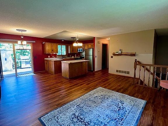 Welcome to this spacious, open floor plan home. The main level of this home features two comfortable bedrooms with walk-in closets. Inviting kitchen with stainless appliances and a central island, dining room walking out to a relaxing deck, with beautiful mature trees surrounding this home. Lower level opens to a large family room with a walkout, to a backyard that is an oasis of its own-fenced in for privacy, with several areas to sit and relax or use for all your entertaining. Summer id here and the tempting above-ground pool awaits your enjoyment! Heated and insulated, 2-car garage. New siding 2024, recent furnace and AC tune up. Don't miss the chance to make this home your own!