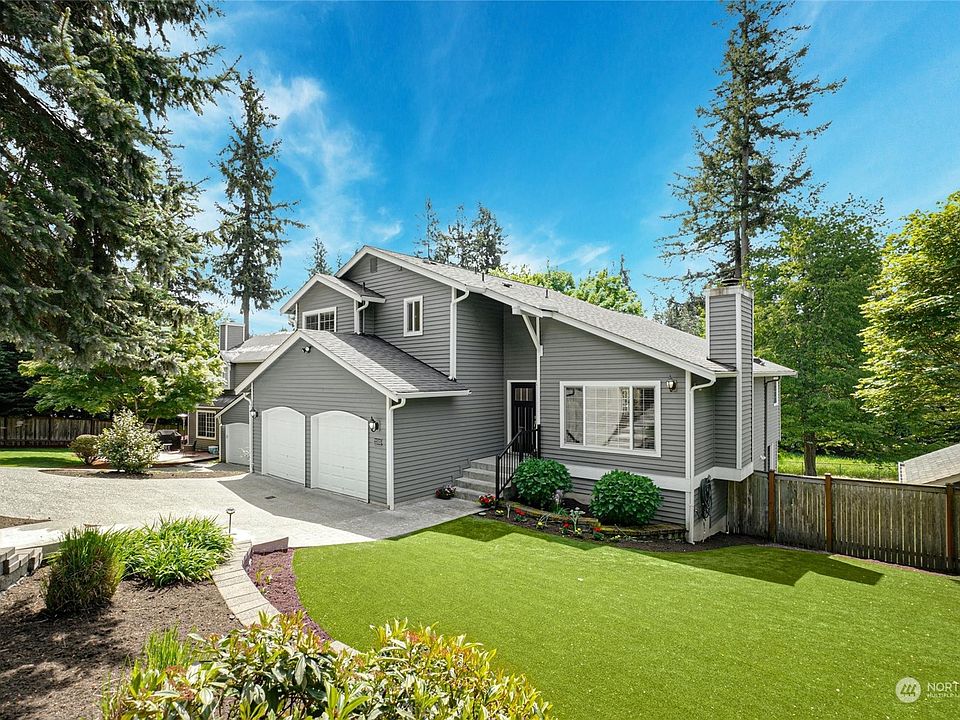 Immaculate 2,519SF, 3BR, 3.5BA tri-level on 1/2 acre in the heart of Sammamish. Light-filled floorplan w/cathedral ceiling, renovated chef’s island kitchen incl Dacor, Meile & LG stainless appliances & Crema Marfil marble slab counters. Updated primary bath, hand-scraped maple hardwoods, separate office, rec room w/wet bar & media room w/high-end AV systems available. South-facing 330SF trex deck & 630SF patio overlooking yard & greenbelt – perfect for summer BBQs! Fenced backyard w/large lawn adjoining greenbelt, 100SF shed w/ power & extensive patio. A+ location just mins to parks incl Lk Samm State Park & a short commute to Issaquah, Redmond, I-90 or SR 520. Award-winning LWSD incl Mead Elem & Eastlake HS. Don’t miss this beautiful home!