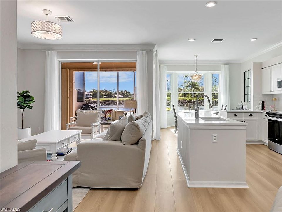 Enjoy serene lakefront living in this beautifully upgraded 2-bedroom, 2-bath villa located in the highly sought-after Stoneybrook community! Nestled in a quiet cul-de-sac with a premier location on Knighton Run, this home offers an extended driveway providing extra parking alongside a 1-car garage. Stunning private views of the lake, golf course, and preserve from the spacious great room & extended screened lanai– perfect for entertaining or relaxing. Low association fees and resort-style amenities with something for everyone make this Stoneybrook villa a popular choice! The newly updated kitchen overlooks the living area and features a modern counter-height island with quartz countertops, white subway tile backsplash, new rectangular under mount sink & brushed metal bridge pull down sprayer faucet, and new Whirlpool stainless steel appliances. The extended bay window dining enclave provides the perfect setting for casual dining, offering tranquil Southwestern views of the lake and preserve, framed by stunning sunset vistas. Inside this light and bright villa, you will find uniform natural tone laminate flooring, crown and quarter-round moldings adding a touch of elegance, LED lighting and fans throughout, setting the perfect ambiance. Freshly painted walls, doors, ceilings, and trim create a crisp, modern aesthetic complemented by new white electrical outlets, hinges, and door hardware. Wall mounted bedroom TVs with concealed wiring, and elegant window treatments—including blackout drapes in the primary suite—add convenience and sophistication. The spacious primary suite offers two closets, including a walk-in, and provides direct access to the front lanai through sliding glass doors. Both bathrooms showcase new vanities, countertops, sinks, faucets, lighted LED mirrors, and comfort-height toilets. The laundry room features built-in cabinetry and a new LG washer and dryer. Additional highlights include an indoor storage closet, solid-surface shelving in the primary and linen closets, and an extended driveway providing extra parking alongside a 1-car garage. Additional upgrades include a new 2025 A/C system, newer tankless water heater, impact glass windows, and accordion hurricane shutters on the 2 large screened-in front and rear lanais. Enjoy peace of mind and comfort in this move-in ready model villa, where association fees cover basic Xfinity cable/internet, landscape maintenance, exterior & interior pest control, trash, plus reserves for exterior pressure washing, painting, and roof replacement. Community amenities include a clubhouse, pool & spa, fitness center, tennis, pickleball, volleyball, basketball, bocce courts, sports fields and more! Stoneybrook is built around a public championship golf course designed by Gordon Lewis & Jed Azinger, where you pay as you play. All furniture and area rugs are available for purchase, making this the perfect turnkey opportunity to enjoy the Southwest Florida lifestyle!