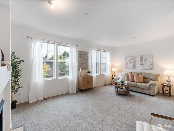 Experience modern elegance in this 3-bedroom, 2.5-bath corner unit condo at 21507 42nd Ave S Unit F3, SeaTac, WA 98198, in the serene River Ridge community. Built in 2004, this 1,872 sq ft home features an open layout with abundant natural light, newer carpet & hardwood floors, a cozy gas fireplace, & an office/den. The updated kitchen boasts granite counters & shaker cabinets. The primary suite offers a walk-in closet & stunning views of the valley and Cascade Mountains. Enjoy a private patio on a greenbelt, in-unit laundry, and a 2-car garage. New roof installed 2025. Ideally located near SeaTac Airport, I-5, Hwy 167, the light rail and Southcenter Mall —perfect for commuters. Schedule your tour today!