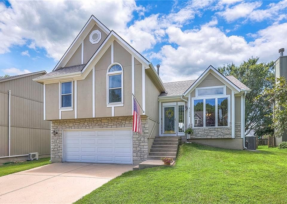 Welcome home to this beautifully maintained property in the heart of Western Shawnee! This inviting split-level home features an open floor plan that's perfect for family gatherings, with vaulted ceilings and beautiful hardwood floors on the main level. The spacious family room offers a cozy fireplace, built-in shelves, and plenty of natural light. Enjoy peace of mind with major updates already done for you—including a new roof, new HVAC, and new windows in 2024! The second level features newer carpet and interior paint, LVP flooring in the primary bedroom and bath, while the exterior boasts eye-catching stonework. Step outside to a large, fenced backyard with deck and patio—ideal for entertaining or relaxing. Easy access to highways, making your commute a breeze. Don’t miss this fantastic opportunity to own in the Deerfield Trace community where you can enjoy activities at the pool and be a part of the award winning Desoto School District! This one is a MUST SEE and won't last long...bring your buyers! (SqFt and Taxes per county record. Rooms sizes are estimated.)