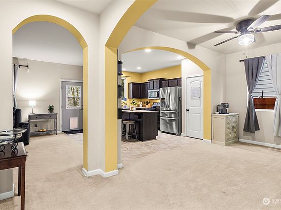 Welcome to Spring in this lovely 4 bedroom home with 2.625% assumable loan! Surrounded by lush forest landscape, this property is located in the quiet Blackjack Terrace neighborhood, just a few minutes from downtown Port Orchard, shopping & restaurants and a short commute to Kitsap Naval Bases & Seattle ferries. Step into the spacious entry & explore the open concept main floor w/ dining room & kitchen recently updated with new stainless appliances including gas cooktop. Upstairs you'll find 4 large bedrooms, utility room, den/rec room area & the primary suite complete w/ jetted tub. All bathrooms have been wonderfully updated. Fully fenced backyard with lots of gardening room. Back on market, inspection report available. New roof included!