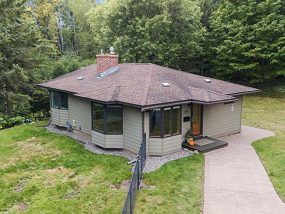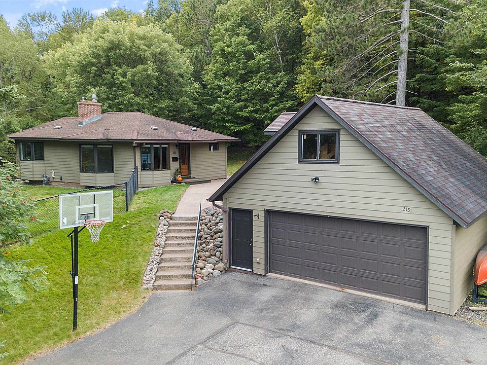 Nestled among the trees on a beautiful .45-acre lot and directly abutting Hartley Park, this stunning home offers the perfect blend of nature, comfort, and style. Step inside to an open sunny living and dining area with bay windows, and the kitchen featuring cherry cabinetry, granite countertops, a breakfast bar, and a built-in hutch, with gorgeous hardwood floors flowing through part of the main level. The ginormous family room invites you to gather by the fireplace, watch the wildlife, or enjoy game night. This space has so many options! The main floor also includes one bedroom with 2 closets and an updated full bath. The lower level provides even more living space with three bedrooms, a large recreation room warmed by a gas fireplace, brand-new LVP flooring, laundry room with walkout, AND a relaxing sauna complete with shower. Updates include a newer furnace (2020) and an air exchanger (2025). The fenced front yard offers privacy and play space, while the surrounding landscape puts you right at nature’s edge with trails, wildlife, and endless outdoor adventures just steps away. There is a 2005 built 2+ car detached garage and you will find a bonus space that sits above it with a separate entrance that is great for storage or you could even finish it for an added space! This home has been well loved and is ready for its new owners!!