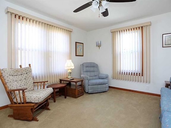 Cute 3-bedroom bungalow with a basement located on a large corner lot on Evansville's East Side. Welcoming you to the home is an enclosed front porch where you can sit and enjoy views of the neighborhood. The spacious, light-filled living room offers a great place to entertain. The eat-in kitchen features lots of cabinet space and a nice area for a dining table. The master bedroom is adjacent to the home's bath and offers a large closet. The second bedroom is also adjacent to the bath and the third bedroom currently houses the washer and dryer connections. Outside you will find a fenced yard attached to the 2.5-car garage. Per Seller: new roof 2016; new 96% gas furnace and 16 seer air conditioner 2012; new water heater 2013. Other updates include: replacement windows; seamless gutters with guards; entry doors; ADA compliant commode. Sale includes: range; refrigerator; microwave; washer; and dryer.