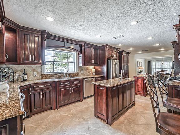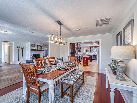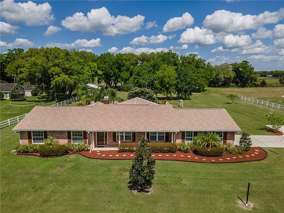 This is one of those very special homes that brings back warm memories. Memories of your favorite dinner served in the sweet dining room, loved ones gathering around the cozy fireplace, all of your favorite people bustling around the kitchen sharing laughter and good times! This home is the setting for all of your best memories to come. Perched on 1.43 acres of Florida sunshine, this light filled, 4/2 split plan has cheery, wide open spaces. The kitchen has custom wood cabinetry with too many drawers to count and sleek granite countertops that seem to go on forever. Two islands are surrounded by stainless steel appliances showcasing a gas cook top, wall oven and wine cooler. Breakfast bar overlooks the family room which includes beautiful wall to wall custom cabinetry. You'll love the gorgeous crown moulding! Airy master with walk-in closet and en-suite. All of the bedrooms are good sized. New windows throughout allow you to gaze upon your new country lifestyle. Relax on your patio surrounded by fenced privacy area which leads to a cozy palm treed niche. Oversized two car garage and extra long driveway are sure to please. Stretch out, relax and drink in all this amazing property has to share!