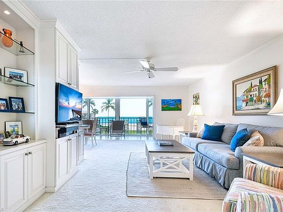 This two-bedroom, two-bath beachfront condo offers unbeatable unobstructed sunset views right from your living room! Nestled in the Chateau of Naples, a low-density community with just 26 residences, you're only steps away from sparkling Gulf beaches. This move-in-ready condo is your blank canvas to craft the ultimate beachfront paradise, where an open concept living and dining area flows seamlessly to a wide screened lanai overlooking the water. The space is bright and airy, perfect for relaxing or entertaining with those western sunset views. Practical perks make life a breeze with a washer and dryer right in the unit, impact glass windows for storm protection, and electric shutters for quick convenience. You'll also love the covered carport space plus extra guest parking, heated community pool, grilling station, car wash area, and beautifully manicured grounds which create a serene tropical escape. With an on-site manager, everything is well cared for. The location couldn't be better, in the highly sought-after Moorings neighborhood just south of Doctors Pass, putting you minutes from Fifth Avenue South and Third Street South with their top-notch restaurants, trendy art galleries, and endless boutiques. Imagine sipping your morning coffee on the screened lanai, watching boats glide in and out of Doctors Pass. Stroll down to the beach for a sunset walk, or just kick back and let the water views wash over you. Don't miss out on owning a slice of Naples’ coastal dream and start living the beach life you've always wanted! A must see!