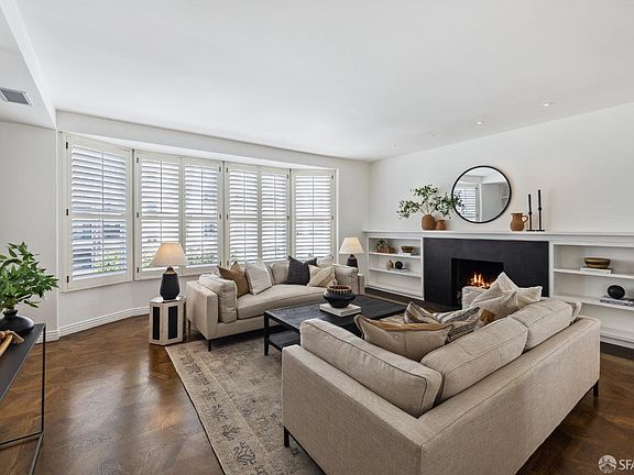 Nestled in prime Pac Hts, this beautifully renovated, 2-level upper unit is part of a boutique 2-unit elevator bldg mere blocks from all that Fillmore street has to offer. 99 Walk Score®. Located between Alta Plaza Park & LaFayette Park. House-like, this Jorgensen TIC features 3BD/3BA, 2-3 car pkg for this unit, & an exclusive-use, roof-top terrace. The inviting LR with a curved bay window spans the width of the building and features a focal fireplace flanked by custom built-in bookcases. Lovely parquet flrs flow into the adjacent formal DR which opens to a delightful Romeo balcony overlooking a large lightwell that bathes the central rooms in natural light. The handsome, eat-in chef's kitchen is equipped w/ top-of-the-line stainless appliances & honed granite counters. The long, curved picture gallery, a signature of Jorgensen architecture, leads to 2 sunny Bdrmss. The SE has an en suite BA & may used be an alternative Primary. Full BA w/ slatted stone tiles off the hall. Lg laundry rm. Upstairs, the stunning primary is a tranquil retreat w/ a beautifully renov.BA, walk in closet , custom storage, & a walk-out roof grdn, Lg storage rm off the garage. Fast track condo conversion. 2151 Jackson is a luxurious oasis in the one of the city's most desirable locations. A/C.