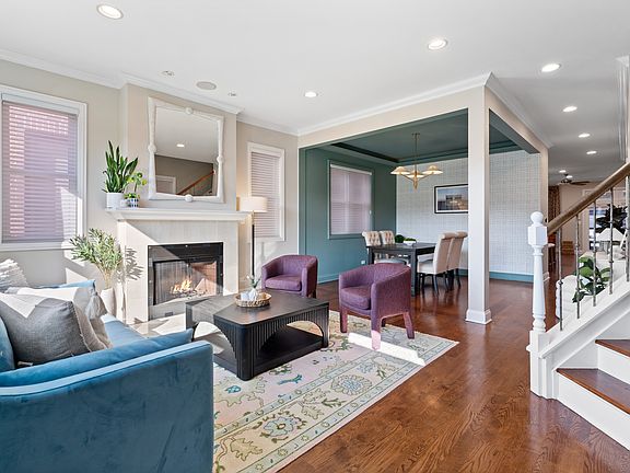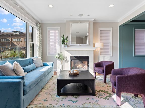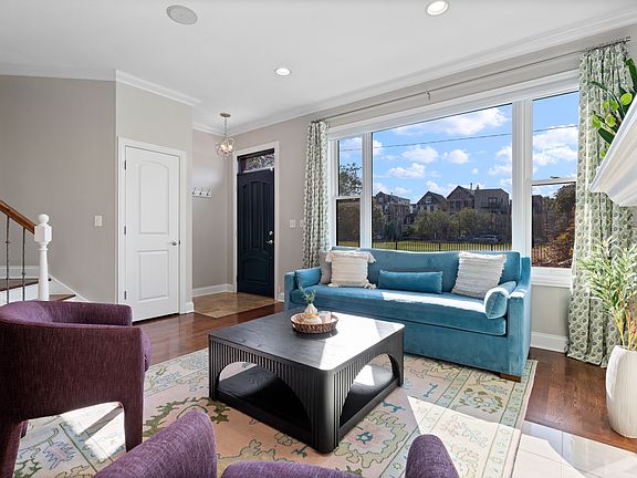 Perfectly positioned in the heart of Bucktown, directly across from Holstein Park, this stunning 4-bedroom, 3.1-bath full masonry home offers the ideal blend of elegance, comfort, and city convenience. Step inside to a sun-drenched living room highlighted by a charming picture window overlooking the park and a cozy wood-burning fireplace, seamlessly flowing into a sophisticated dining area. The chef's kitchen is designed for both everyday living and entertaining, featuring abundant cabinetry, a full pantry, expansive counter space, an eat-in breakfast bar, and a central island that opens into the spacious family room. Sliding glass doors extend the living space outdoors to a large Trex deck-ideal for grilling and al fresco dining-with stairs leading up to a beautifully appointed garage roof deck with pergola. Upstairs, discover three bright bedrooms, including a luxurious primary suite with generous closets and a spa-inspired bath boasting a soaking tub, oversized shower, dual vanities, ample storage, and natural light from a skylight. The two additional bedrooms share a thoughtfully designed bathroom with double sinks and a separate shower/toilet area. The lower level offers exceptional versatility with a sprawling recreation room, gas fireplace, built-in bar with wine fridge, storage closets galore, and space for relaxing or entertaining. A fourth bedroom with a full bath makes an ideal guest suite or home office. Additional highlights include a large laundry room, grand mud area, irrigated front lawn and a two-car garage. Enjoy the vibrant Bucktown lifestyle just outside your door, with Holstein Park's pool, playground, and green spaces serving as an extension of your backyard, plus easy access to the Blue Line for seamless commuting.