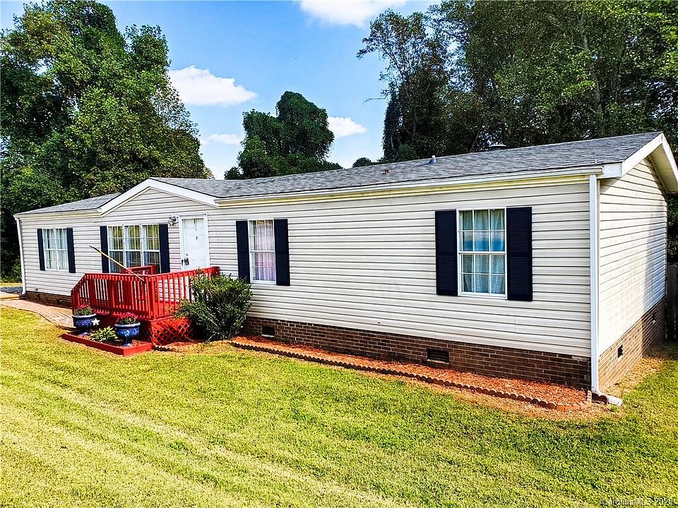 Looking for space? Check out this 3BR 2BA 1,400+/- sq ft manufactured home on a .43 +/- Acre lot. NEW ROOF just installed last week! Laminate flooring throughout the living areas. Open Dining Area/living room with wood burning fireplace. Fresh neutral paint. Split bedroom plan with master bedroom suite on one side of the home and two additional bedrooms plus an office/flex room on the other! Covered back deck overlooks the large fenced back yard with a metal carport and large concrete pad for possible expansion of the shed!