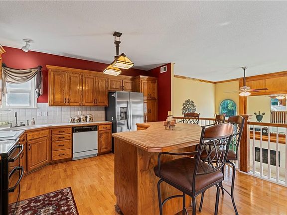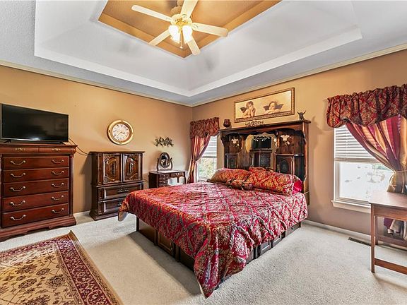 Beautifully maintained 4-bedroom, 3-bath home with over 2,400 sq ft in The Estates of Prairie Haven (also known as Grayson Place) within the Olathe School District. Updates include roof/gutters/soffits (2021), AC & fridge (2022), washer (2023), south-facing windows (2025), composite deck & garage door opener (2025), plus fresh paint, sealed driveway, and more. Features a sun-filled family room with fireplace, spacious kitchen, finished basement, and 3-car garage. Outdoors, enjoy the composite deck and patio on a flat .26-acre lot. Community amenities include 2 pools and HOA services. Conveniently located near Ernie Miller Park & Nature Center and Mill Creek Streamway Park, with quick access to shopping, dining, and highways. Move-in ready!