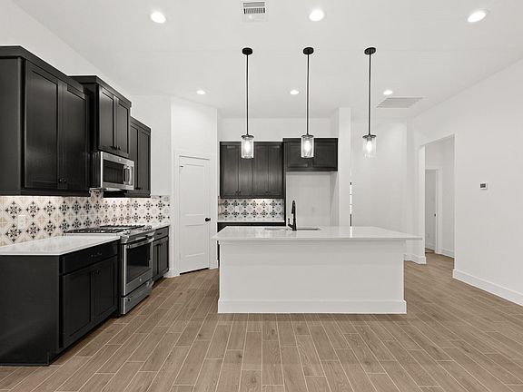 The Athens Plan -Spend the Holidays in this beautiful new Chesmar Home. Oversized front porch and covered back patio with spray texture flooring. Wood look porcelain tile flooring throughout. The kitchen offers 42" Carbon colored cabinetry with nickel hardware, under cabinet lighting, white quartz countertops, a farm house sink, stainless steel appliances including a fridge and a gorgeous patterned porcelain tile star backsplash. Primary retreat includes a separate tub & shower. Full sprinkler system, garage door openers, tankless water heater, 2" faux wood blinds & so much more!