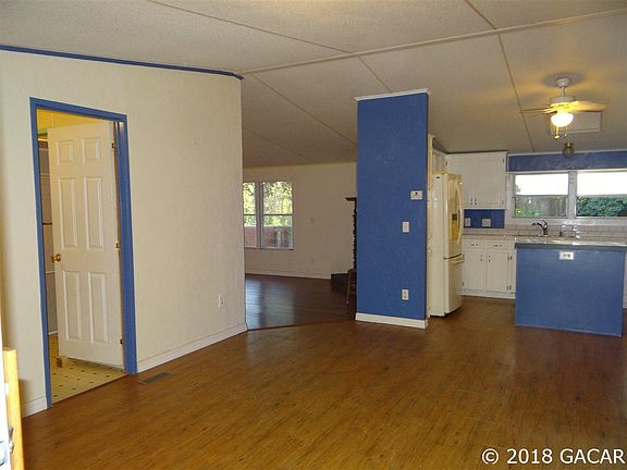 5 acres of privacy in this 4/2 Manufactured Home. Split floor plan with a HUGE master suite that includes a private office area with built in cabinets, large master bath with jetted tub and walk in shower and lots of storage. Home has Wood Laminate Flooring though out, wood burning ledgestone fireplace with wood mantle and the walls have all been drywalled and textured for a real custom home feel. Indoor laundry/mud room with large storage space, laundry tub and stacked washer and dryer. New Metal Roof, New well installed in 2007 but old well has working hand pump. Includes front deck, back screened porch, gold fish pond in circular drive and a real handmade Cobb Hut - that is fully equipped a fireplace.