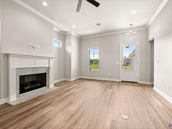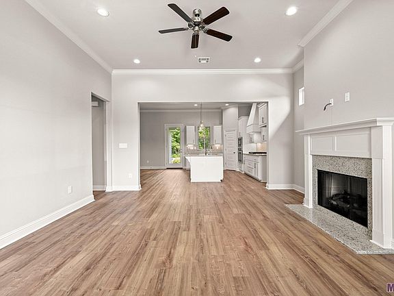 Cameron B floorplan by Level Homes underway in Bruce's Harbor! Enter from the inviting front porch into the spacious living room which is complete with a vent-less gas fireplace with granite surround and opens up into the kitchen and dining space. The gourmet kitchen features custom painted cabinets with 5'' hardware pulls and under cabinet lighting, large center island with sink and two hanging pendant lights, stainless appliance package including 30"-5 burner gas cooktop, single wall oven and built in microwave, 3 CM Moonlite granite, 3x6 Bright Tender Gray tile backsplash, and a walk in pantry. The large master suite has his and hers walk in closets and a spa like bath featuring dual vanities, framed mirrors, separate tub and custom tiled shower with seamless shower door and a private water closet. There is a spacious laundry room with easy access from the master bedroom which will have a single laundry wall cabinet for storage! Patio will be plumbed for gas grill! The yard will be professionally landscaped and fully sodded. Waterfront living In Bruce's Harbor, just minutes off of I 12 at the Springfield exit and only 30 minutes from Baton rouge! Relax and unwind everyday! Water access to Blood river / Tickfaw. Other lots/plans available. Home is ready now!