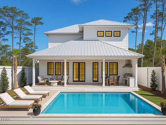 Discover the perfect blend of luxury and coastal charm in this brand-new 2025 construction home just steps from the sugar-white sands of the Gulf. Designed for both relaxation and entertainment, this property features 4 spacious bedrooms, 3 full baths, and a half bath, including two main-level suites with private baths.