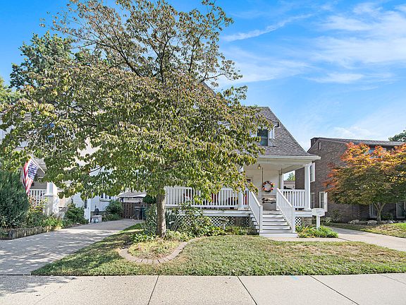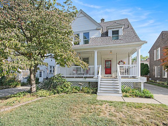 Back on market! Situated amongst beautifully preserved early 1900s homes, this well-crafted home, lovingly cared for by the same family for fifty years, blends classic details with thoughtful updates. A newly built, oversized covered porch with stately pillars complete with a charming porch swing invites you to enjoy morning coffee or relax at the end of the day. The exterior features newer vinyl siding, replacement windows, a concrete driveway with extra parking, and a brand-new 2.5-car garage complete with a 30-amp outlet. Inside, you'll be greeted by original oak hardwood floors and pine trim, a welcoming front living room, and a traditional dining room with a striking bow window. The bright kitchen offers backyard access with a deck and steps leading down to the yard. Upstairs, three comfortable bedrooms and a full bath provide space for family and guests The clean, dry basement includes plenty of storage, newer windows, washer, dryer, and a utility sink. Move-in ready, this home is waiting for your personal touches. And it's conveniently located within walking distance to vibrant West Downtown Dearborn, Greenfield Village and the new Ford HUB Central Campus Building!
