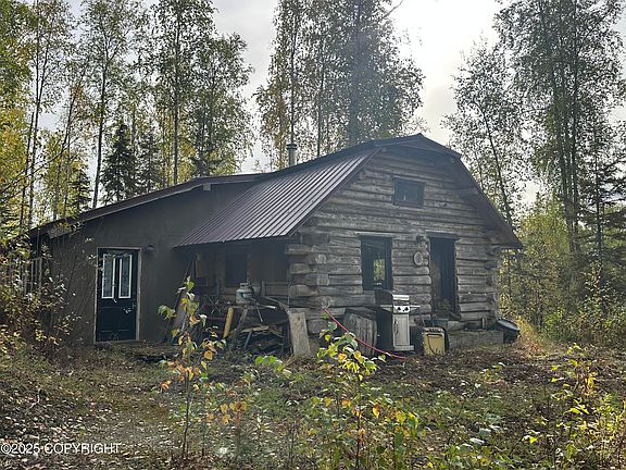 This rustic cabin surrounded by natural forest sits high on a hill and offers complete privacy. The property has power onsite, a well, and unfinished cabin. The cabin is partially furnished and is ready to be finished and brought to its fullest potential. Do not overlook the vaulted ceilings, and windows that offer natural light.Don't miss this chance to own your own little slice of Alaska just 4 miles to downtown Big Lake. The house is being sold AS-IS.